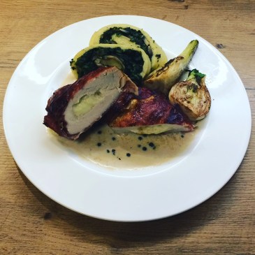 Heute hab ich mich beim einkaufen inspirieren lassen. Da mich sowohl die Erdäpfel, als auch der Prosciutto und der Fenchel angelacht haben, gibt’s heute mit Mozzarella gefüllte Hühnerbrust im Speckmantel und als Beilagen eine Erdäpfel-Spinat-Champignons-Roulade, sautierten Fenchel und Pfefferrahmsauce. Lasst es euch schmecken meine Lieben!