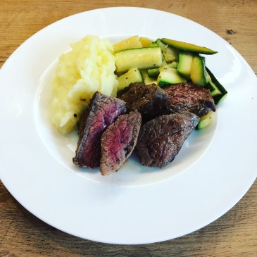 Meine frisch geernteten Zucchini wollen verarbeitet werden – stellt euch also auf Zucchini-Rezepte aller Art ein 🙂 Heute gibt’s deshalb ein Rezept für Steak mit selbstgemachtem Erdäpfelpüree (wer das mal probiert hat, isst wahrscheinlich nie wieder Fertiges aus der Packung) und glasiertem Zucchinigemüse. Lässt sich toll auch als Single-Portion zubereiten.